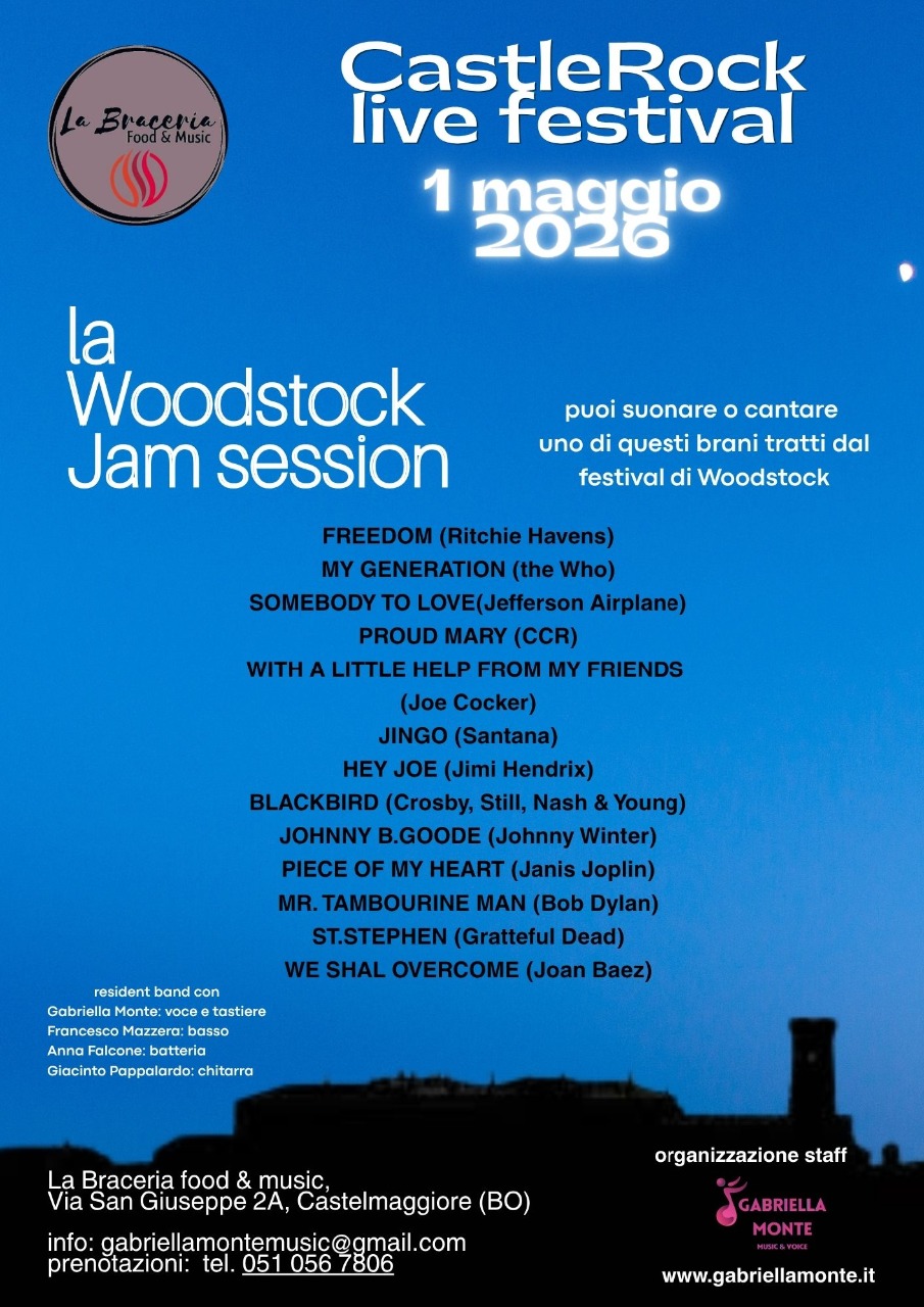 -un palco dove esibirsi in una jam session sulle canzoni più celebri di Woodstock